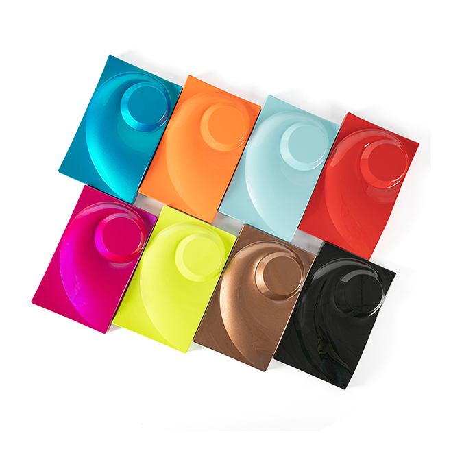 | Product name | Low-temperature water-based acrylic polyurethane conductive primer (2K) | Low-temperature water-based acrylic conductive primer | Low-temperature water-based acrylic polyurethane primer (2K) | Water-based acrylic base coat (metallic glitter/pearlescent effect B2) | Water-based acrylic base coat (solid color effect B2) | Acrylic polyurethane clear coat (2K) |