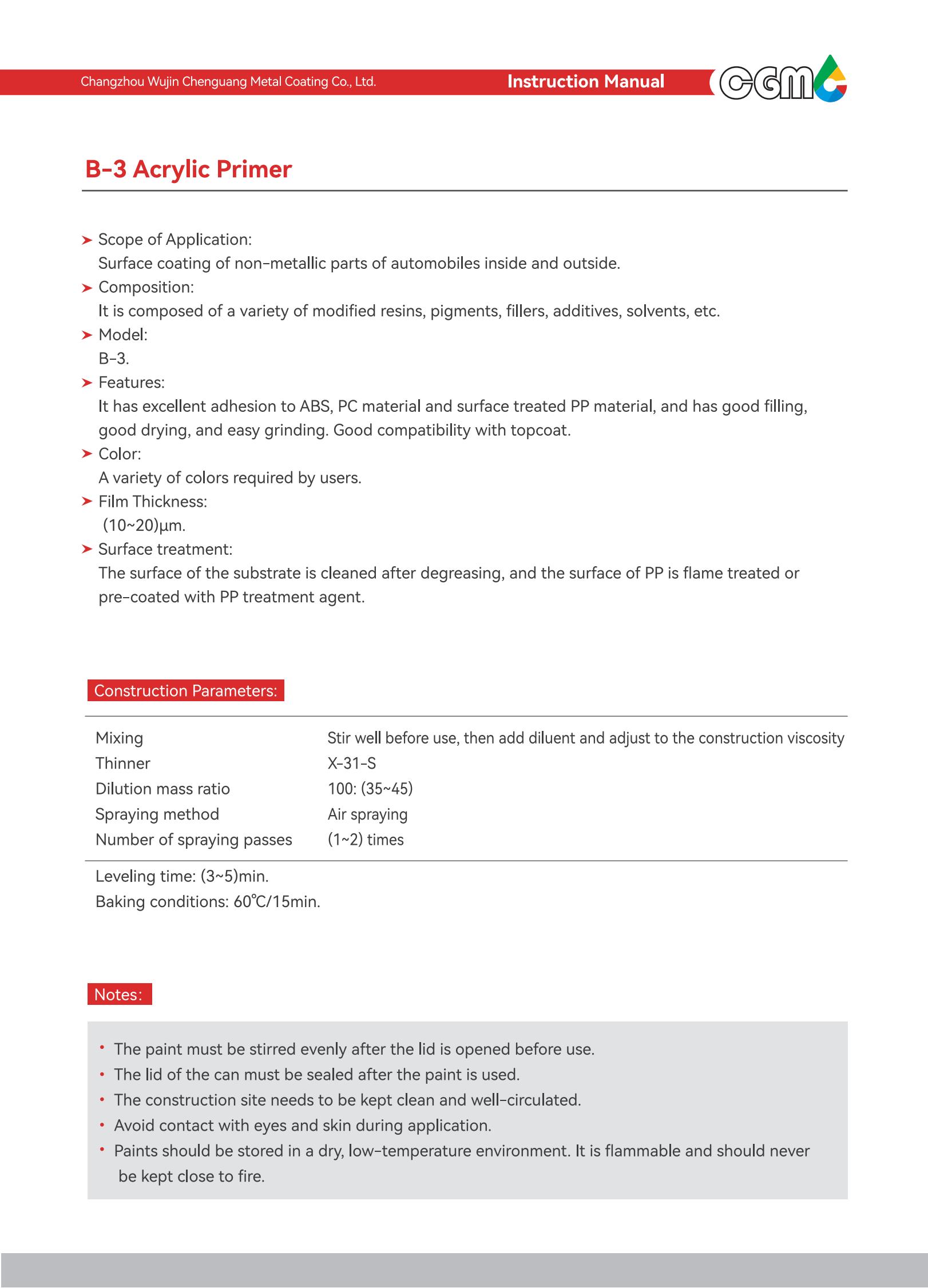 | Product name | Acrylic primer | Acrylic primer (electrostatic) | Acrylic polyurethane primer (2K) | Acrylic polyurethane solid topcoat (2K) | Acrylic metallic base paint | Acrylic polyurethane clear coat (2K) | |