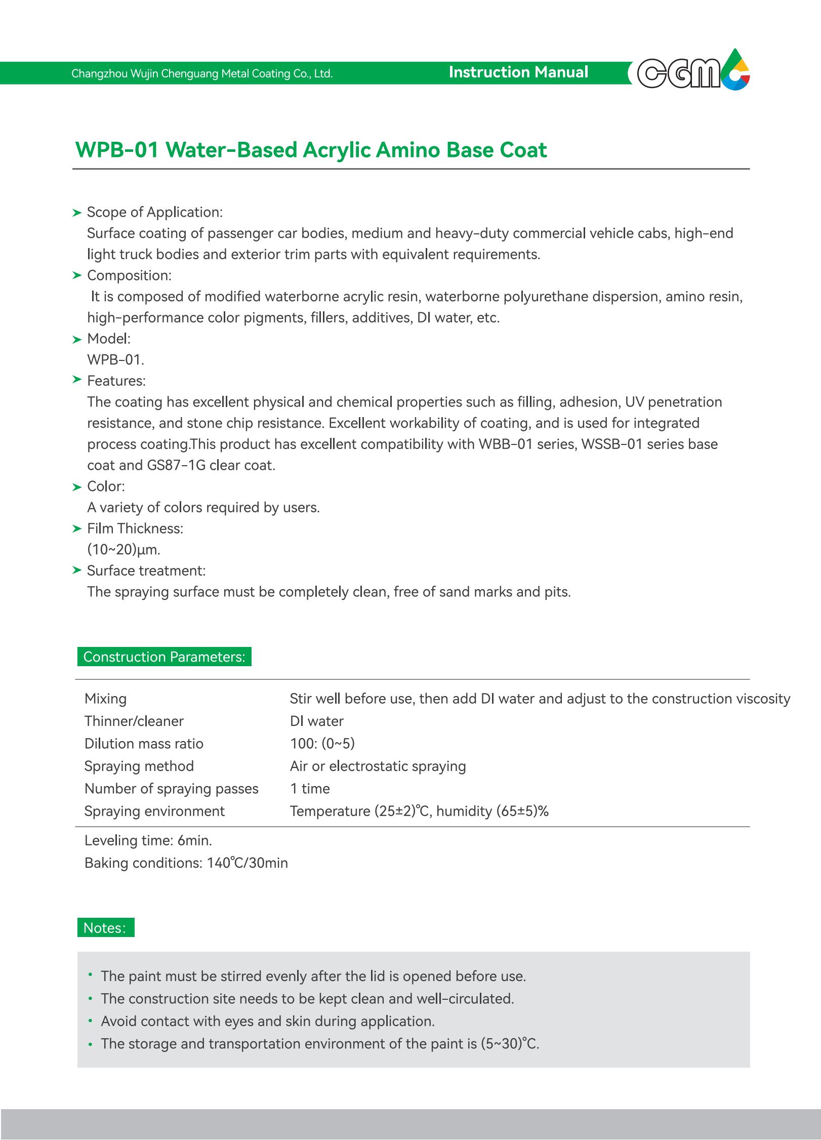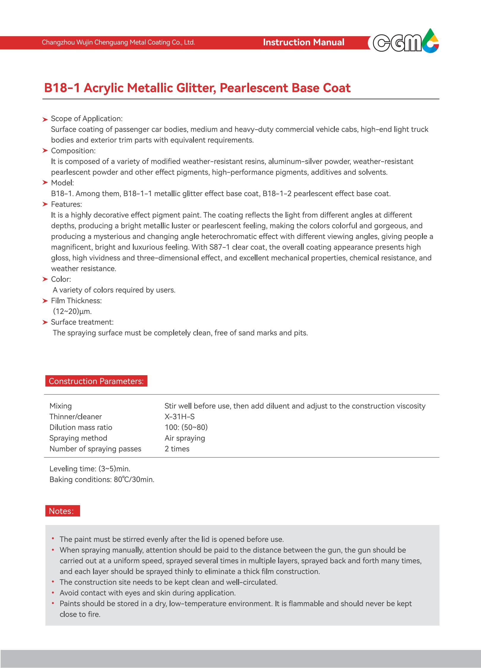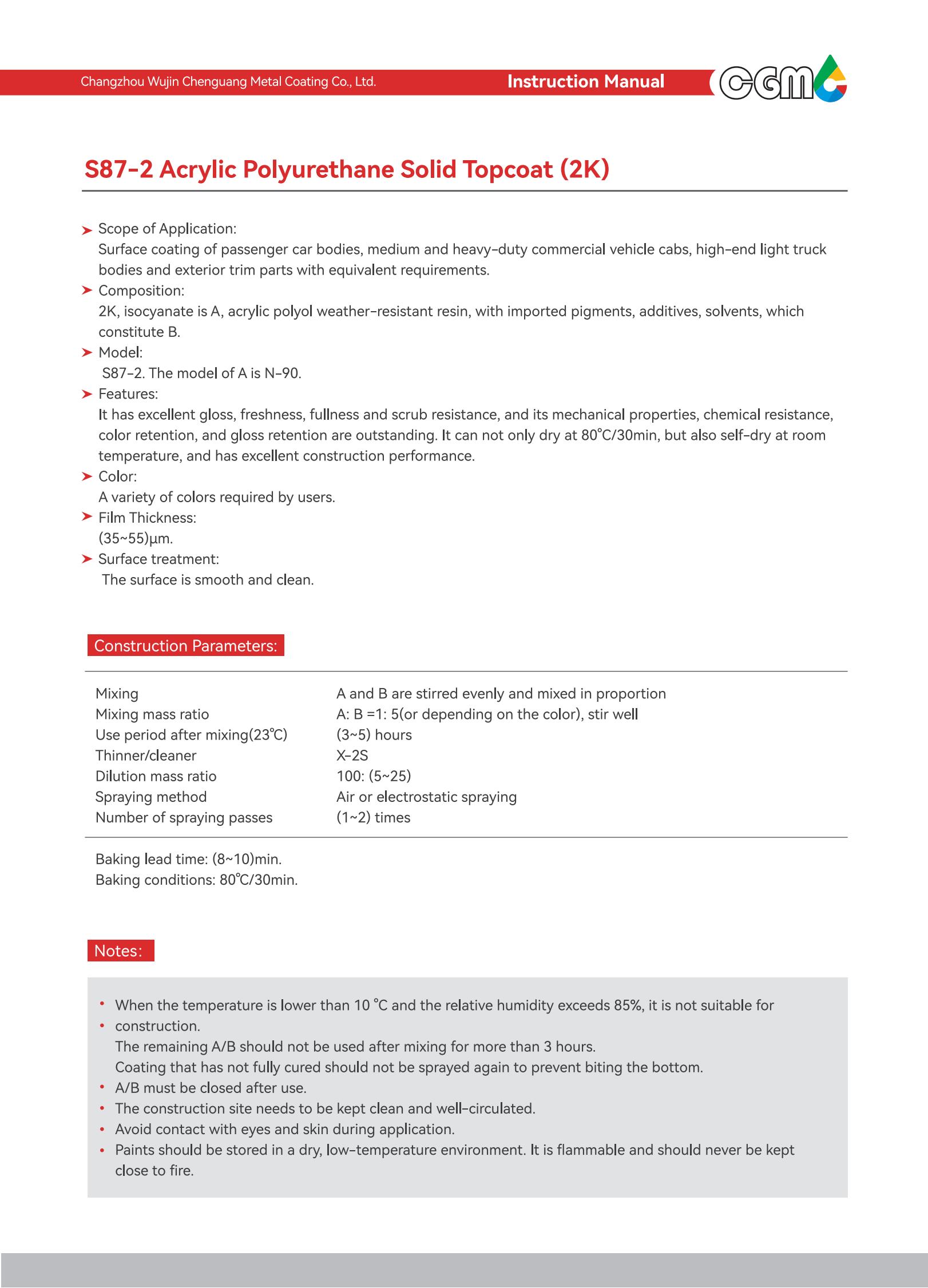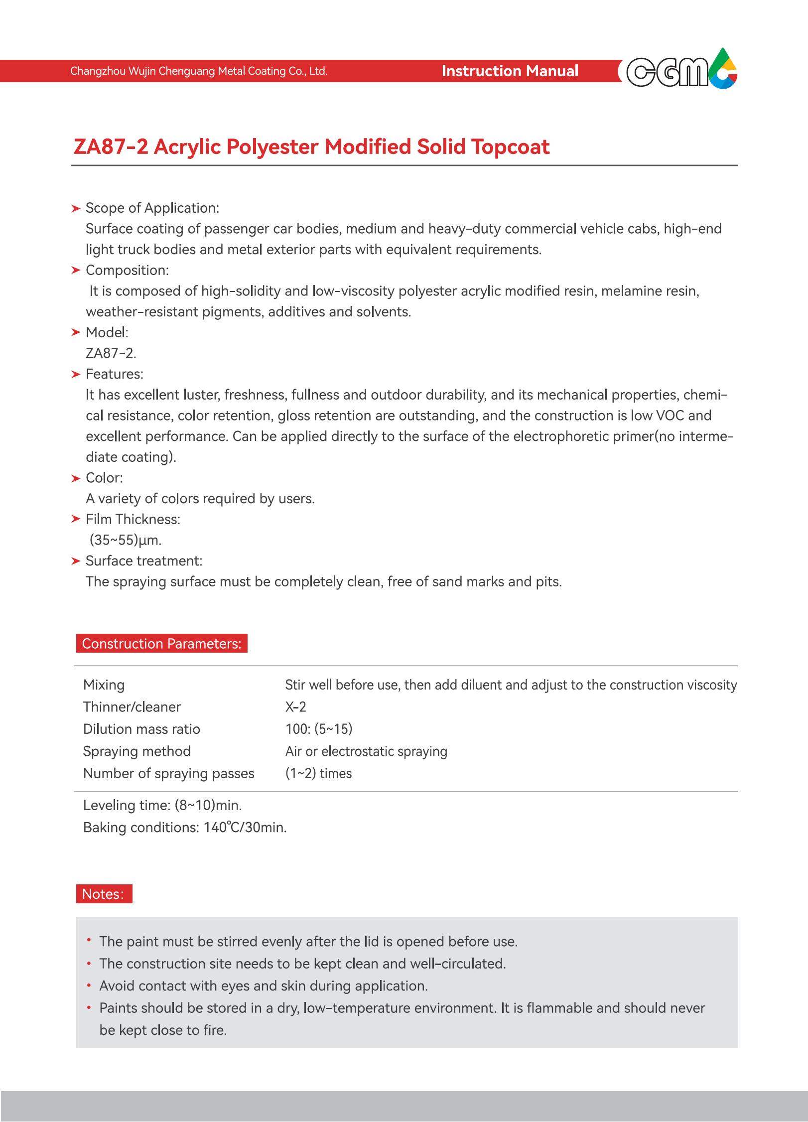 Scope of application | Surface coating of medium and heavy-duty commercial vehicle cabs and metal exterior parts with equivalent requirements | |||