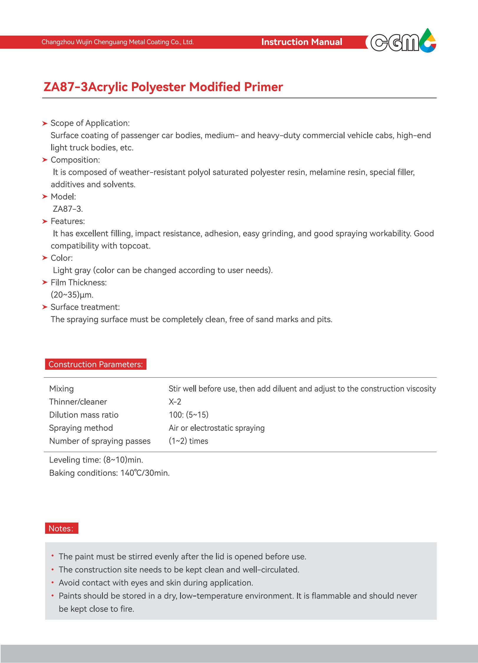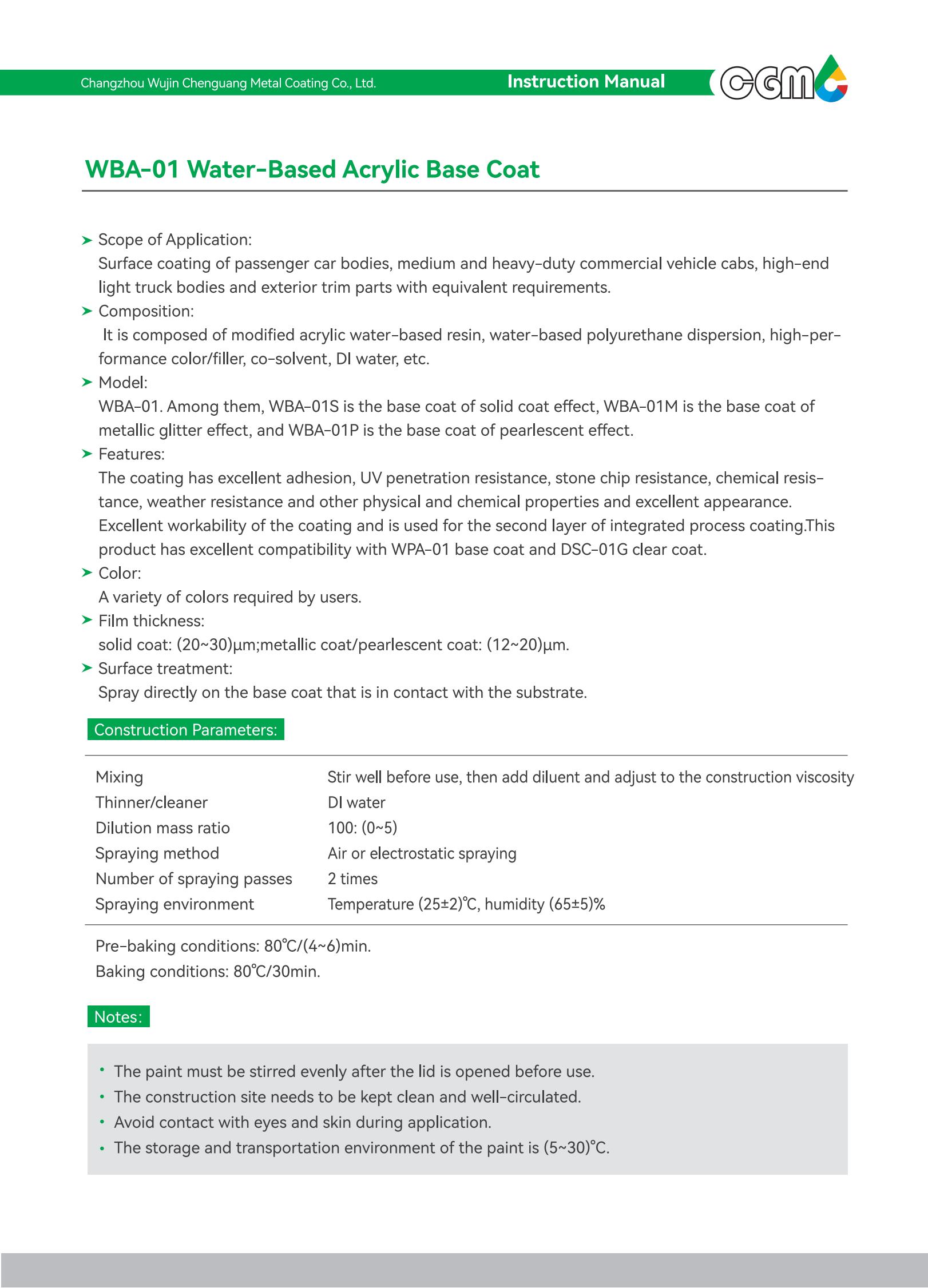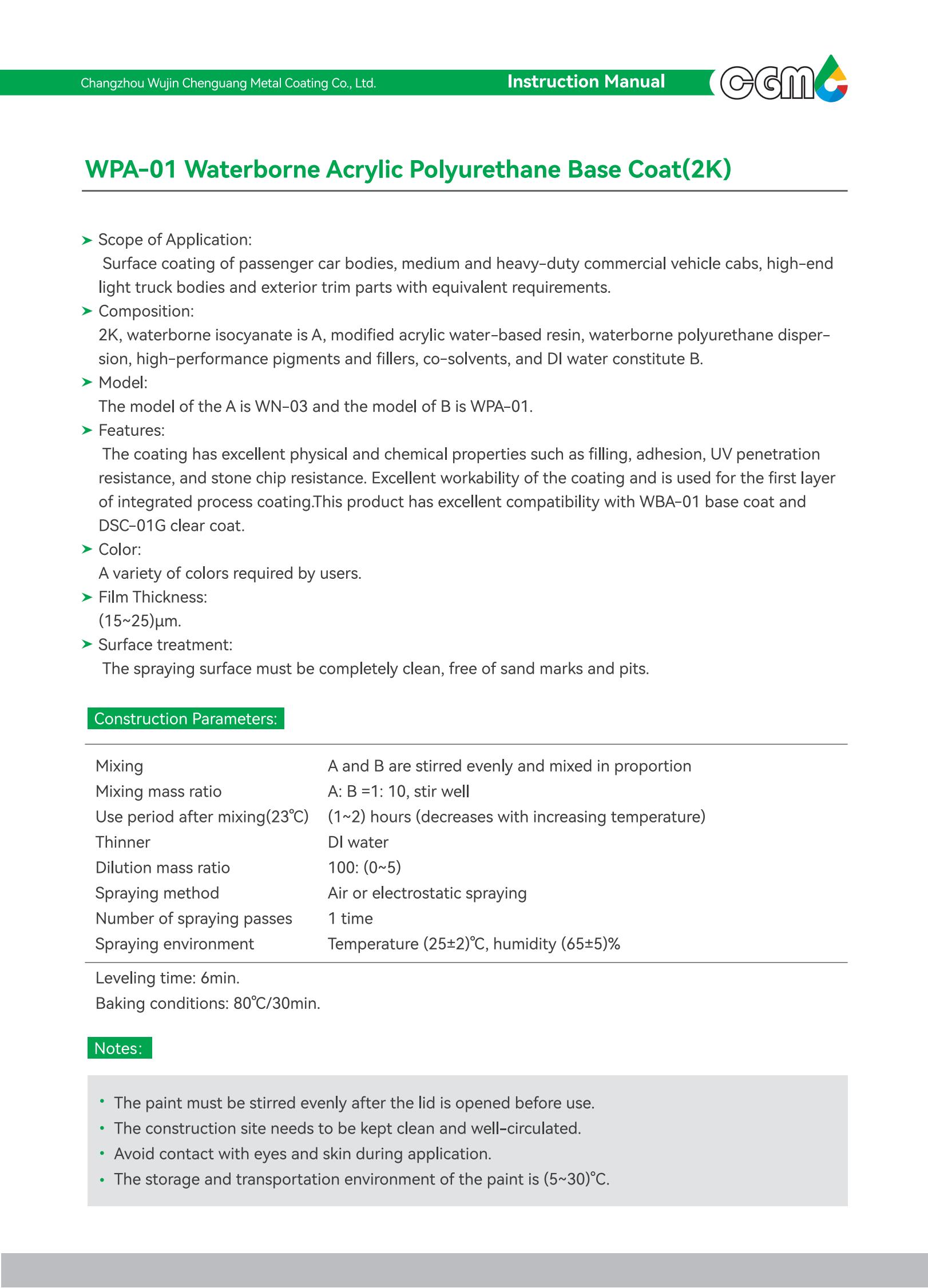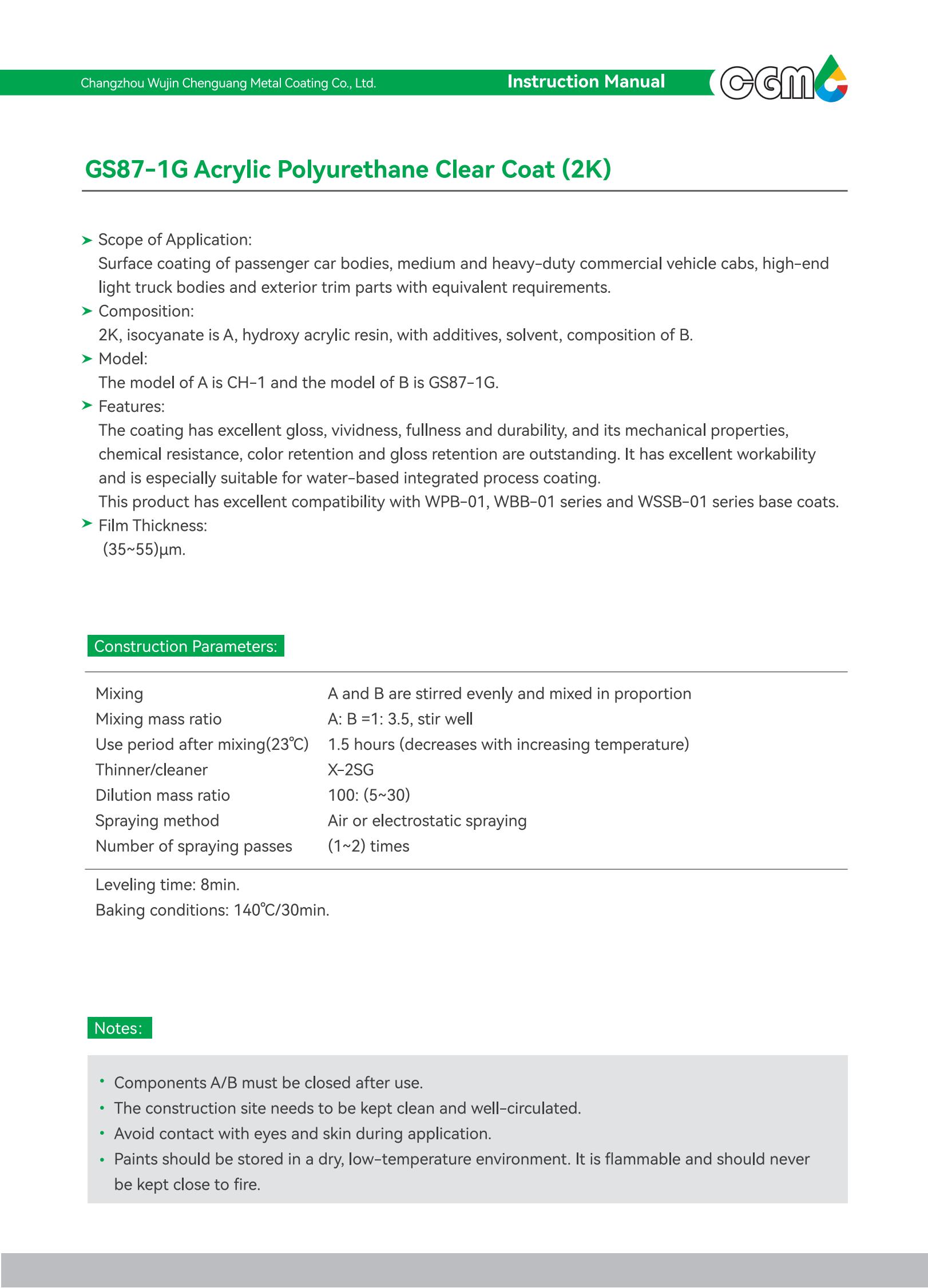 Scope of application | Surface coating of medium and heavy-duty commercial vehicle cabs and metal exterior parts with equivalent requirements | |||