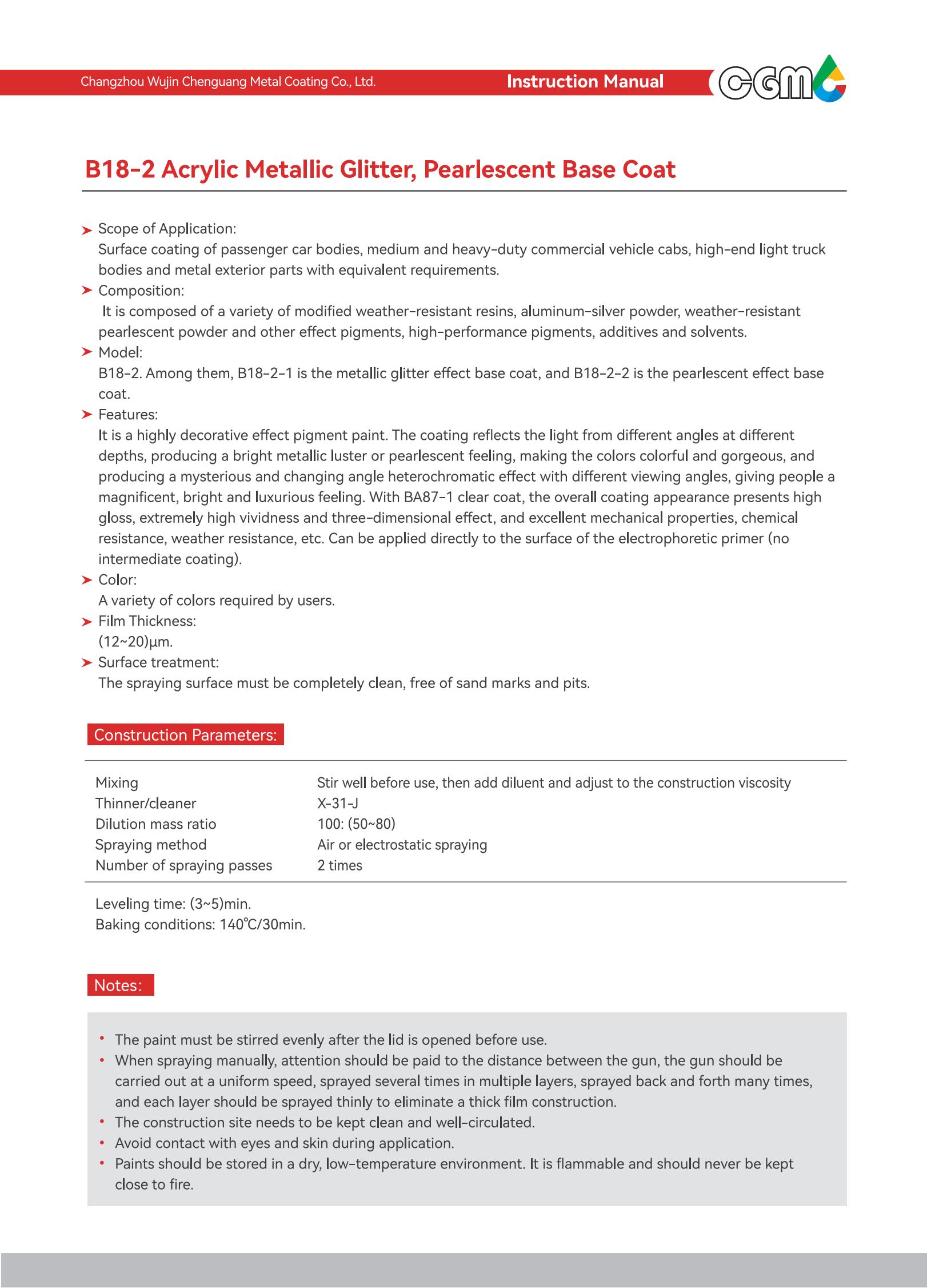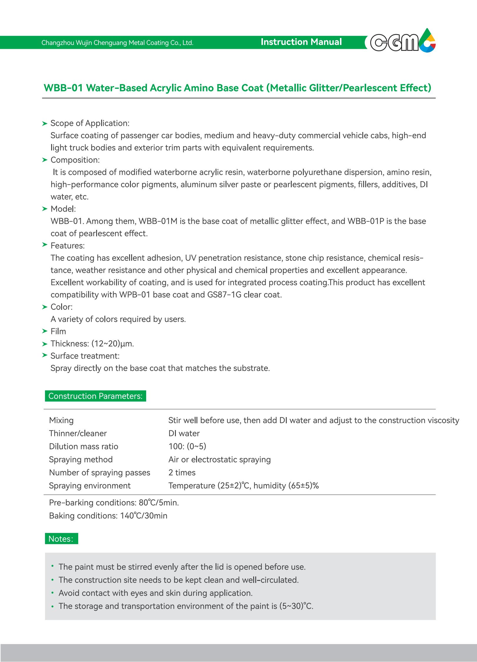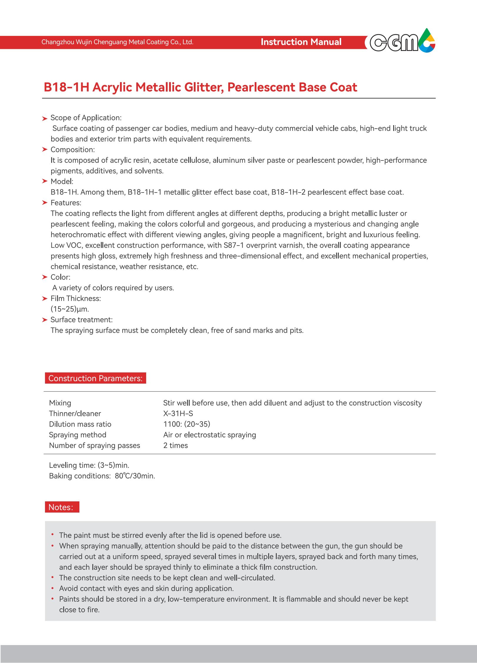 | Technical requirements | It meets the requirements of Q/CT-484 Automotive Paint Coating, an automotive industry standard, GB24409-2020 Limits of Hazardous Substances in Vehicle Coatings, and GB/T38597-2020 Technical Requirements for Coating Products with Low Volatile organic Compound Content. | |||||