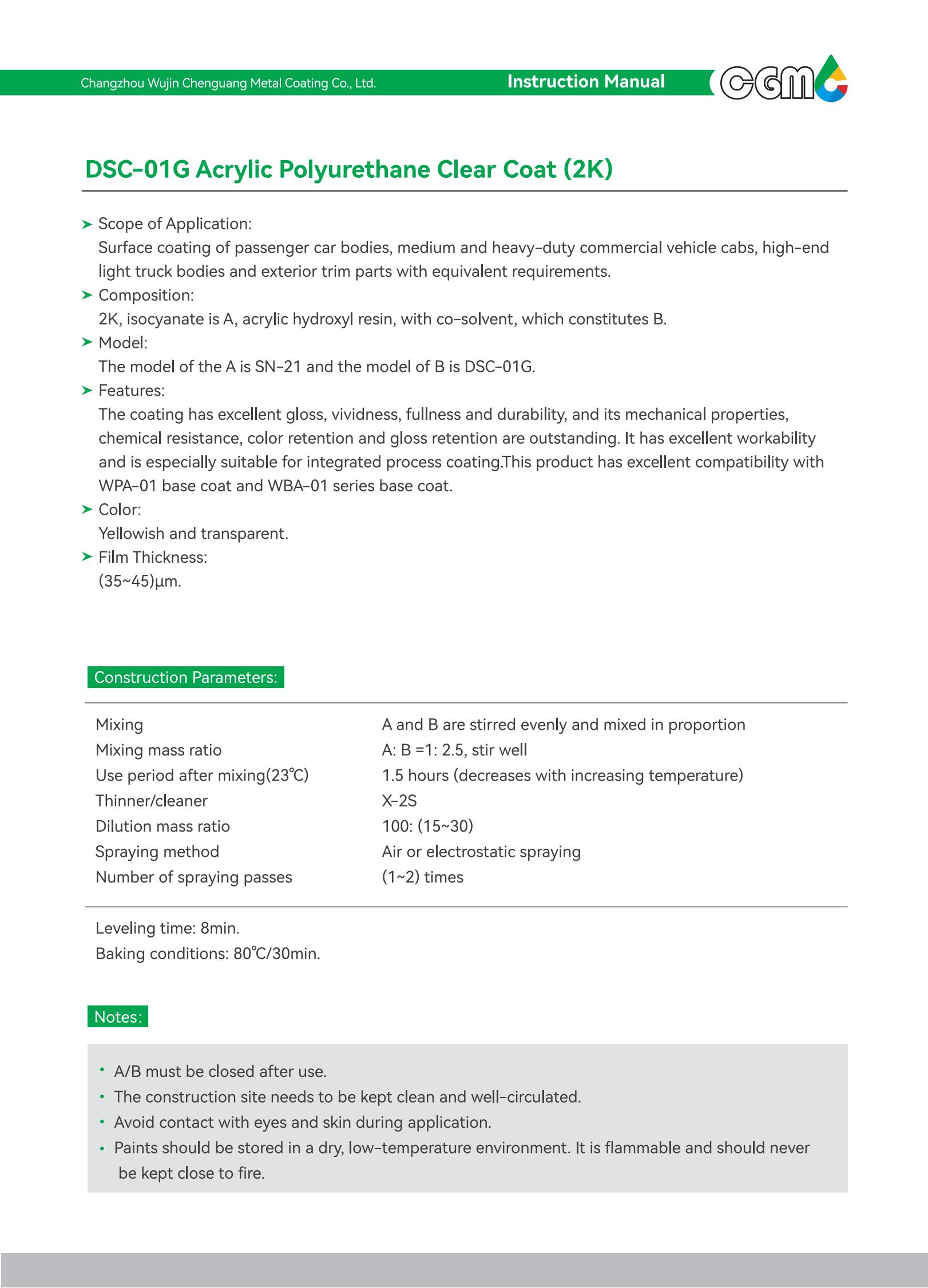 | Technical requirements | It meets the requirements of Q/CT-484 Automotive Paint Coating, an automotive industry standard, GB24409-2020 Limits of Hazardous Substances in Vehicle Coatings, and GB/T38597-2020 Technical Requirements for Coating Products with Low Volatile organic Compound Content. | ||
