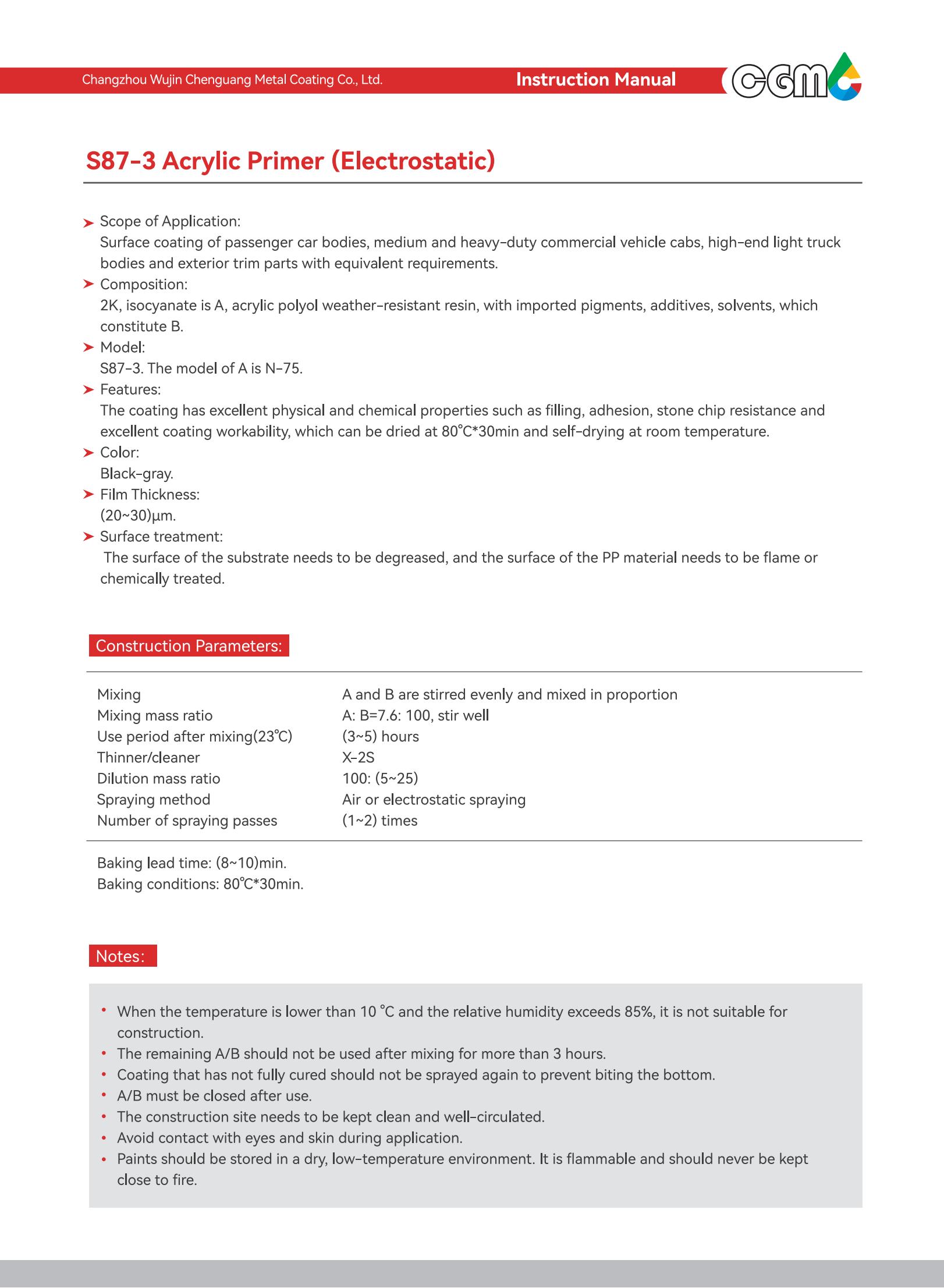 | Process conditions | Air or electrostatic spraying, (80±2) ℃/30min | ||||||