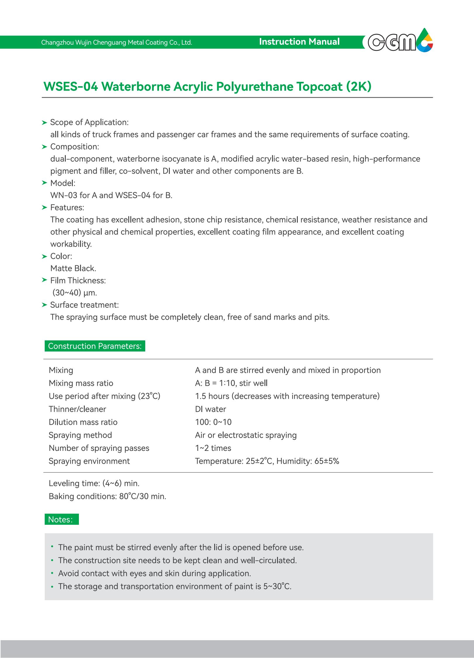 | Product name | Low-temperature water-based acrylic polyurethane topcoat (2K) |