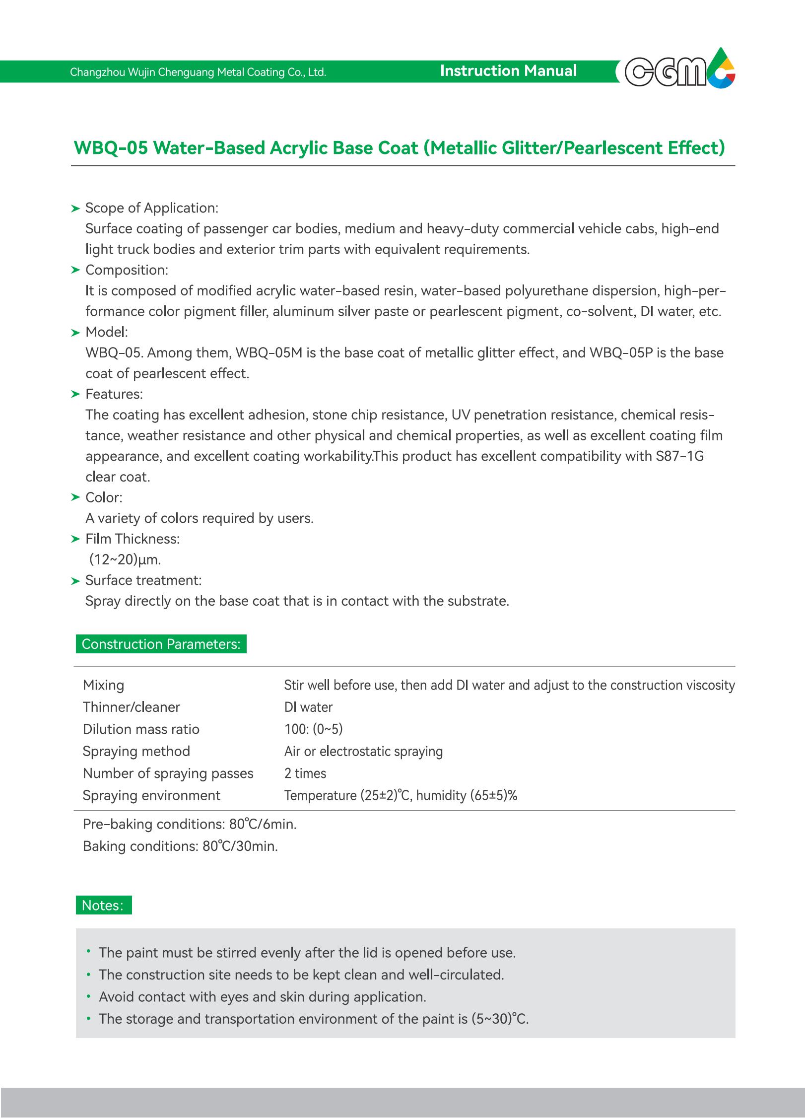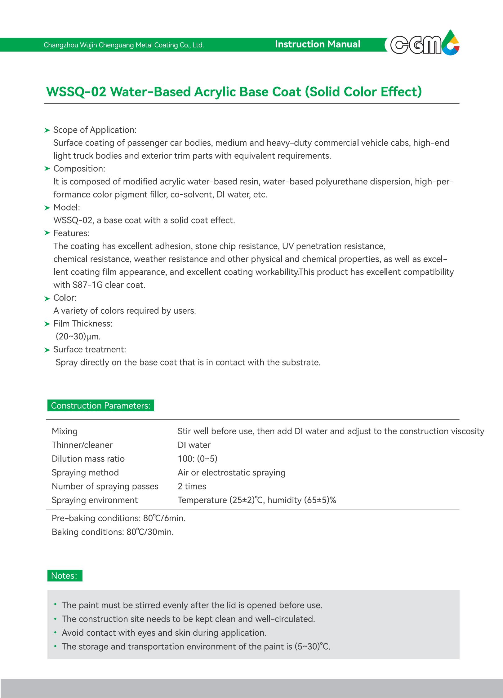 | Technical requirements | It meets the requirements of Q/CT-484 Automotive Paint Coating, an automotive industry standard, GB24409-2020 Limits of Hazardous Substances in Vehicle Coatings, and GB/T38597-2020 Technical Requirements for Coating Products with Low Volatile organic Compound Content. | |||