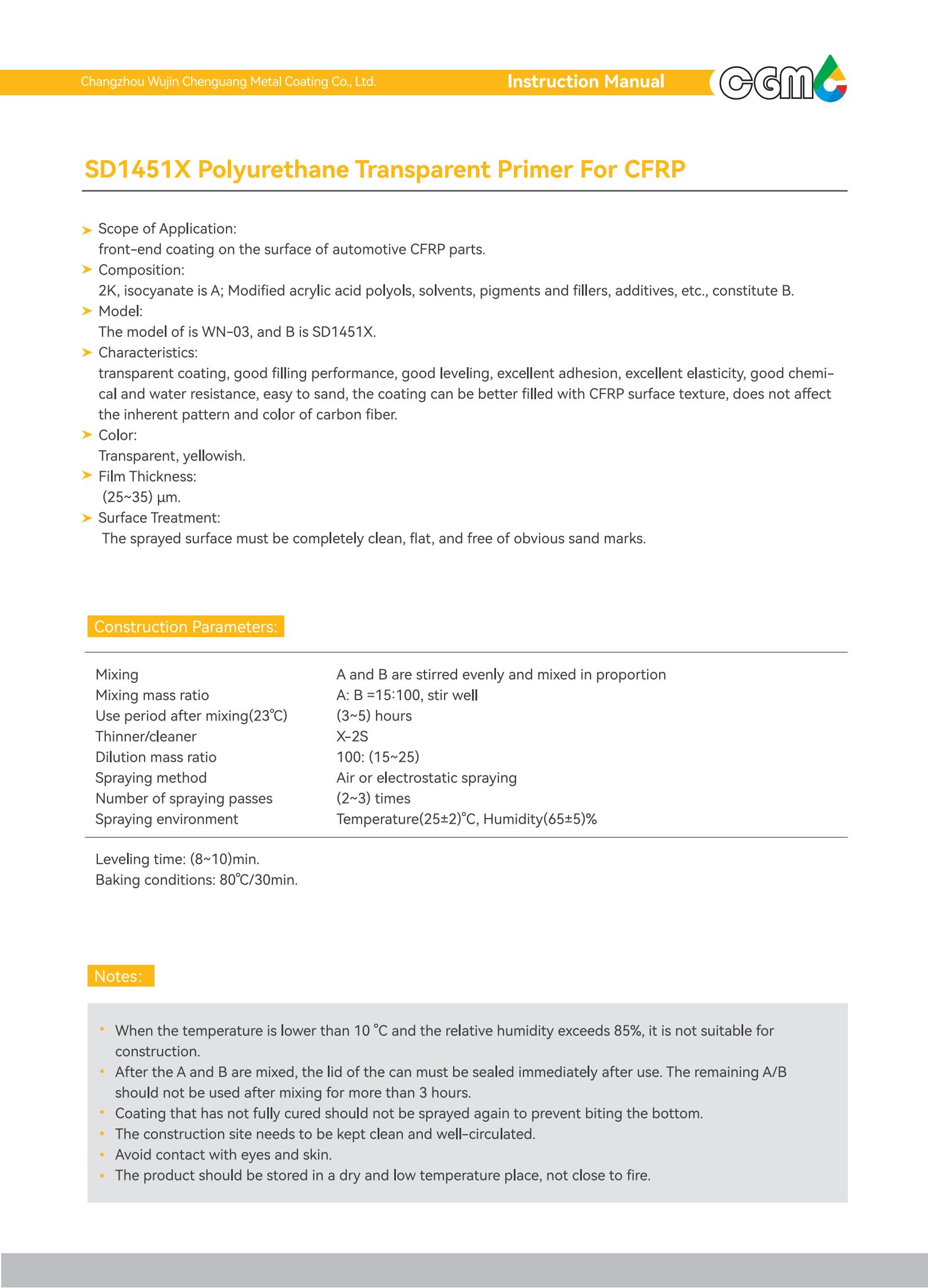 | Process conditions | 80℃/30 min Air or electrostatic spraying, 80℃/30 min |