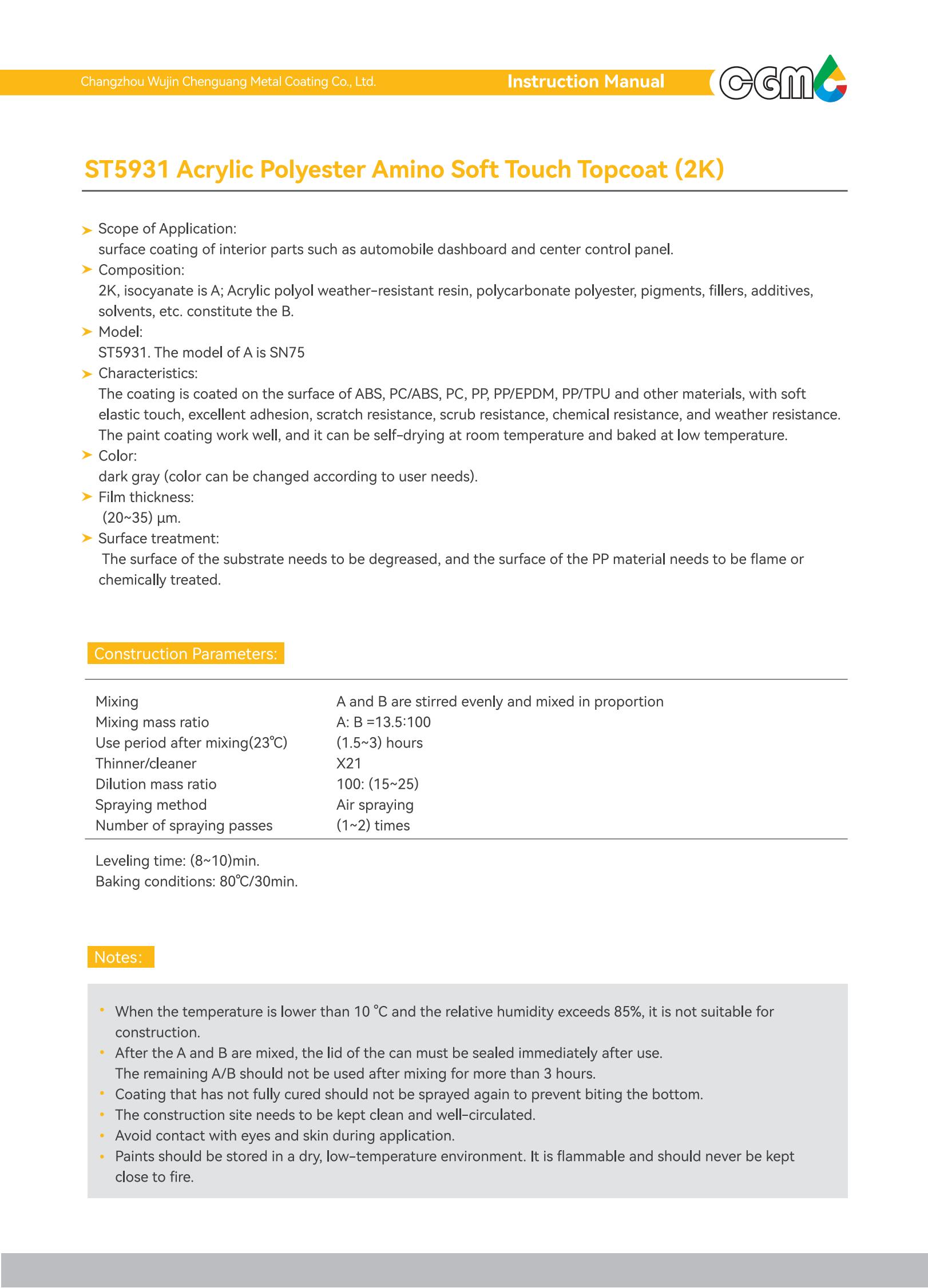 | Technical requirements | Thick coating, good filling performance, good leveling, excellent adhesion, chemical resistance and water resistance |